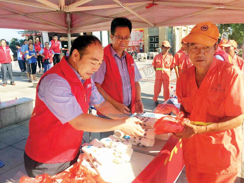 炎炎夏日,為給辛勤工作的環(huán)衛(wèi)工人送去一份關(guān)愛,中鼎減震黨支部聯(lián)合工會(huì)、女工委、團(tuán)支部及部分管理干部組織了一場“情系環(huán)衛(wèi)工,盛夏送清涼”活動(dòng)。8月19日,志愿者們在南山公園和時(shí)代廣場各設(shè)立一個(gè)納涼點(diǎn),為到來的每一位環(huán)衛(wèi)工人送上了慰問品。隨后,大家還拿起掃帚、抹布等清掃工具跟隨環(huán)衛(wèi)工人一起走上街頭撿拾垃圾、擦垃圾桶,并向過往行人宣傳“不亂扔垃圾,從我做起”。