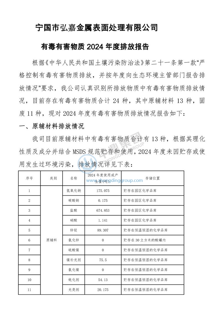 《2024年弘嘉有毒有害物質(zhì)年度排放報告》