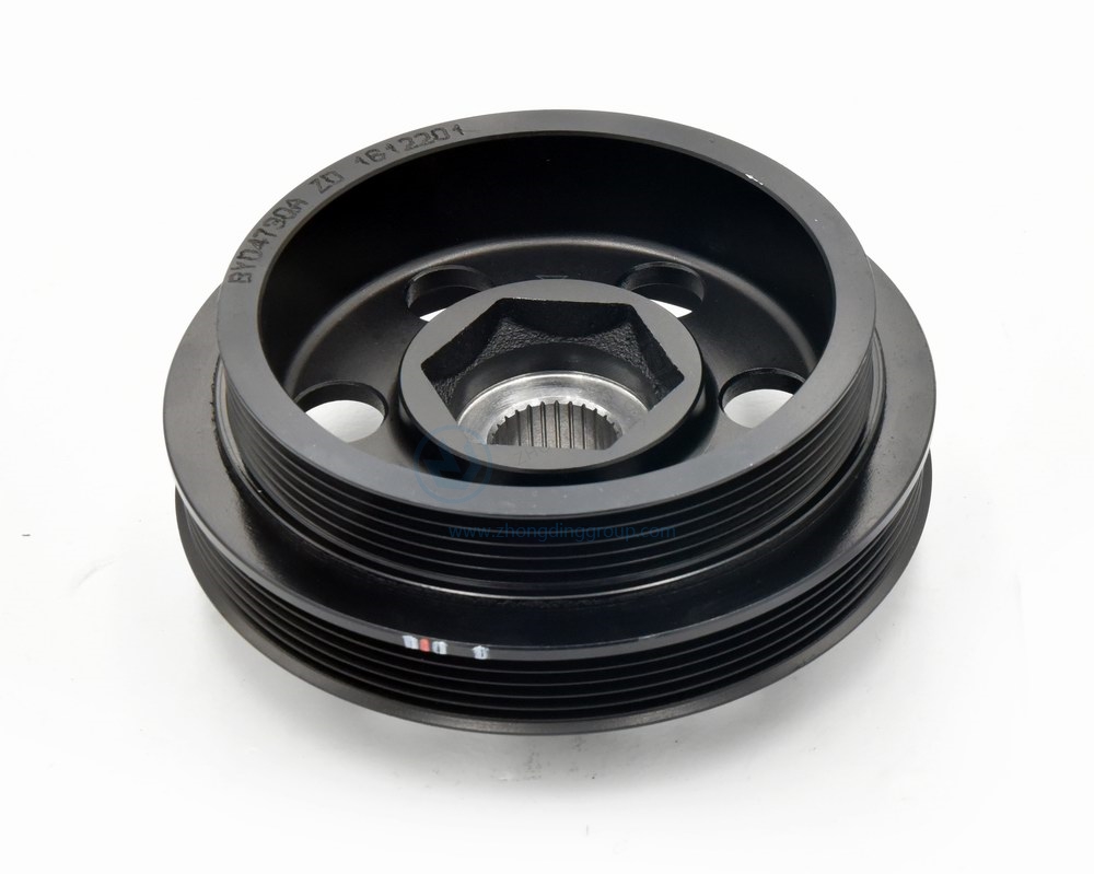 Through the damping and elastic properties of rubber materials, to reduce the torsional vibration of crankshaft, improve the fatigue life of crankshaft, reduce the stress level, transfer torque, and damping torque fluctuation; reduce the vibration and noise of the vehicle. The component used in the crankshaft end of the engine, to reduce crankshaft vibration and transfer torque.